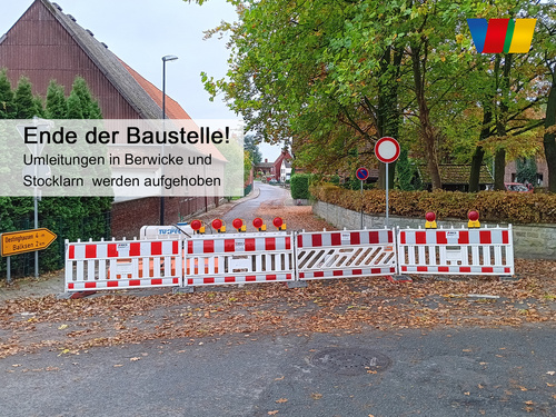 Nachdem am Samstag die Straße „Am Markt“ wieder komplett geöffnet wurde, sind heute zwei weitere, lästige, Umleitung weggefallen. Die Ortsdurchfahrt in Berwicke wird nach der Abnahme durch das Ingenieurbüro, die Gemeinde, die Baufirma, den Kreis Soest und Straßen NRW wieder freigegeben. Dies bedeutet für den Verkehr, dass die L 670 von Soest nach Hamm wieder durchgehend befahren werden kann.