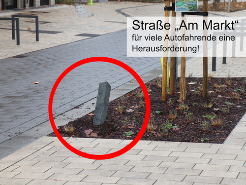 Die neu angelegten Beete stehen als „Fahrbahn“ ganz hoch im Kurs bei vielen Autofahrenden. Der Bauhof muss fast täglich ein oder zwei der steinernen Stelen, die als Beet Begrenzungen eingesetzt wurden, wieder aufstellen. An den Spuren in den Beeten kann man oft ablesen, dass die Verursacher weder von der Fahrbahn, noch von einem gekennzeichneten Parkplatz den Weg ins Beet gesucht haben.